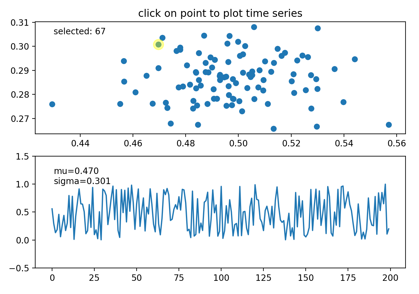 ax.set_title("click on point to plot time series")